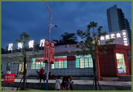 供應品種:一樓開設有特色套餐、蒸煮類蓋澆飯、自助選菜、面點小吃等窗口;二樓主要供應自選菜、粉面、面點小吃等,并設有民族餐窗口;三樓地方特色美食,主要供應特色火鍋、冒菜、烤魚、套餐、漢堡炸雞、粉面等,二樓同時提供夜餐服務。