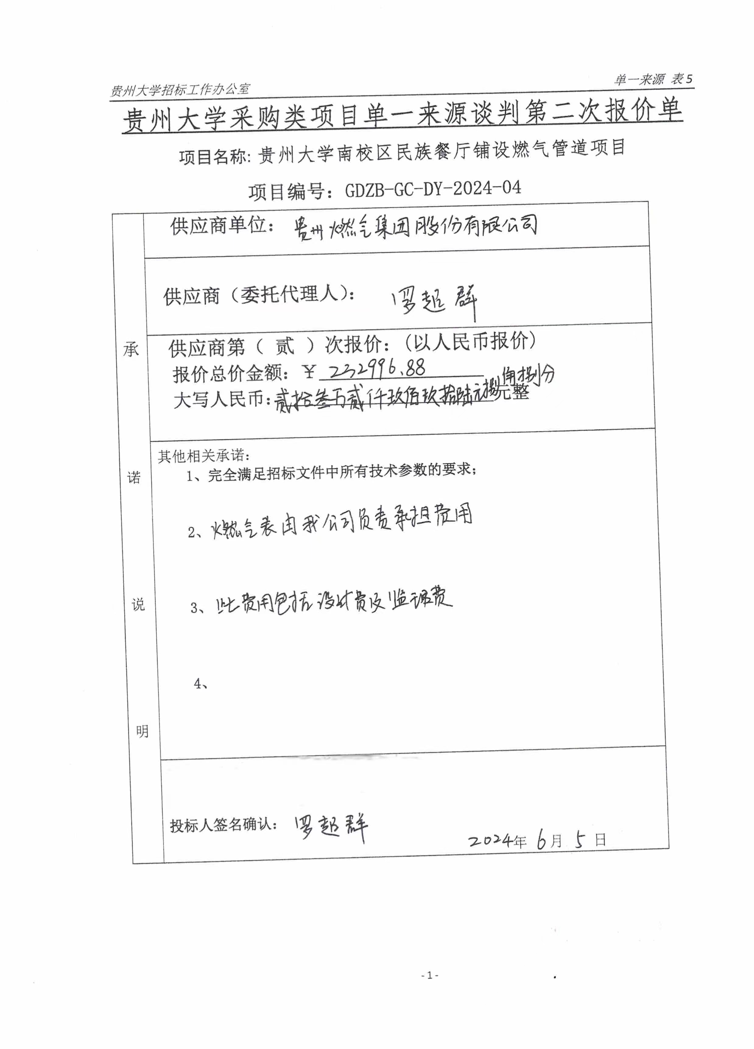 貴州大學南校區民族餐廳鋪設燃氣管道項目,詳見《單一來源采購談判文件》
