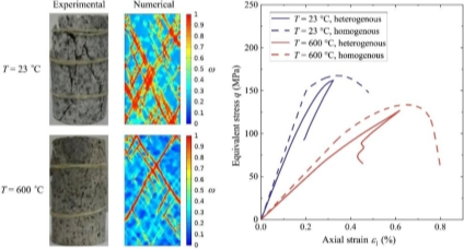 深部巖土工程常處于“三高一擾動”(高地應力、高地溫、高滲透壓、強烈開采擾動)的復雜環境,準確理解和評估巖石類脆性材料在高溫、高壓和高應變率條件下的力學響應對于揭示深部巖土工程的失穩破壞機理具有重要意義。然而,高溫高應變率下的巖石非彈性變形過程涉及熱彈性、熱塑性和熱損傷等能量耗散過程的復雜耦合效應,如何在統一理論框架下定量求解巖石應力、應變、損傷和溫度等狀態變量的演化過程一直是一個挑戰性的前沿課題。